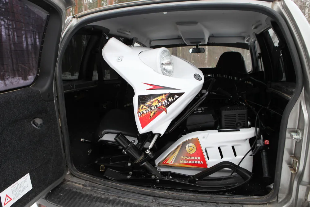«РЫБИНКА» – это мини-снегоход с неповторимыми конкурентными особенностями. Его модульная конструкция позволяет легко разобрать снегоход на несколько частей и перевезти на автомобиле до места.