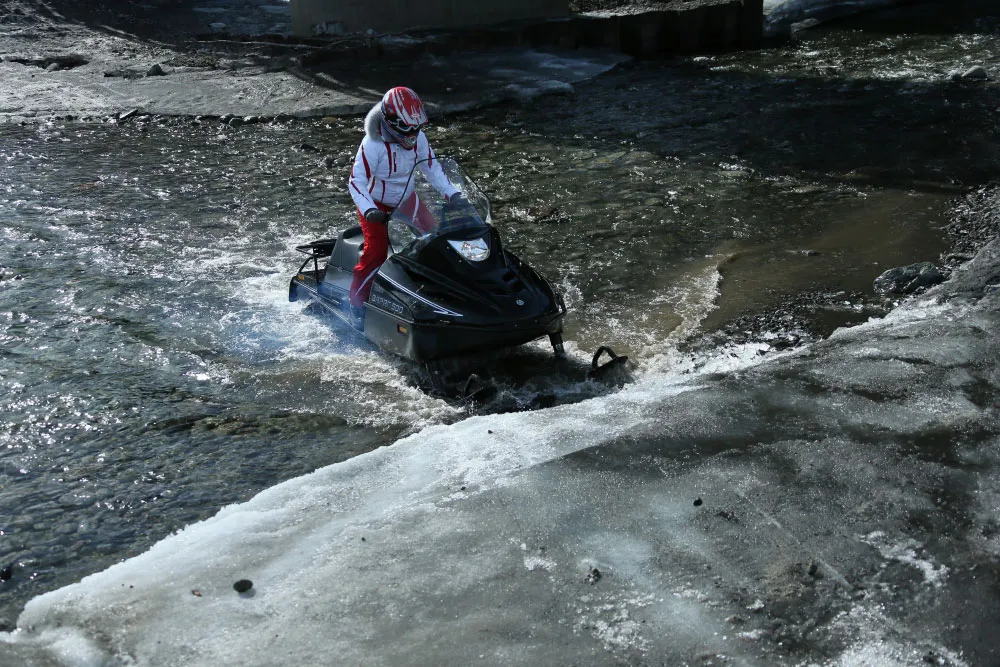 Из особенностей модели стоит отметить высокий руль, позволяющий активно маневрировать в положении стоя. У снегохода двухуровневое сидение и обогрев рукояток руля с курком газа. Высокое ветровое стекло с мощной фарой головного света.